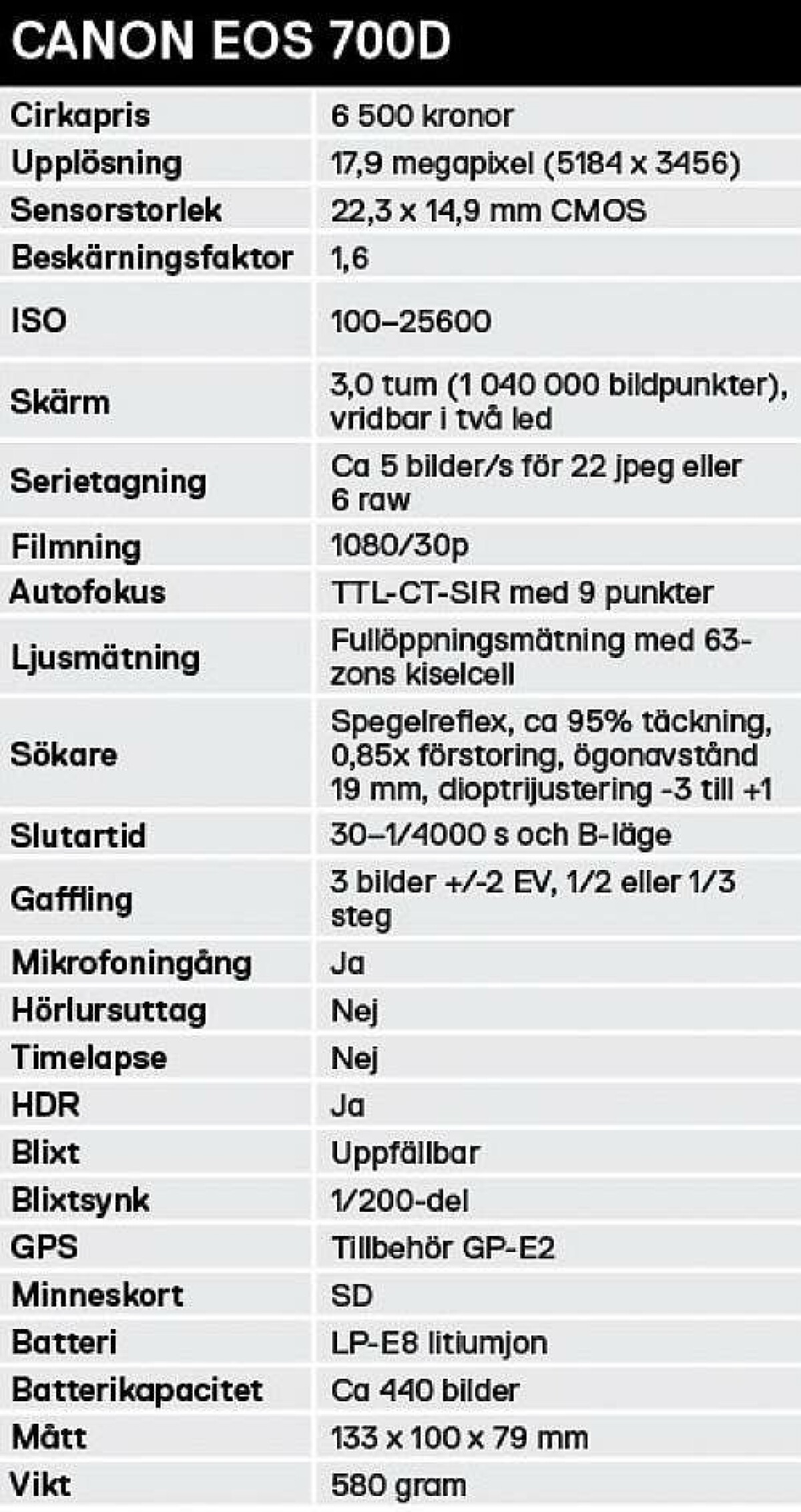 Nya Canon Eos 700d är instegskameran som kom samtidigt som den enklare Eos 100d, men är något större och har något fler finesser. Men trots detta bjuder den på få nyheter från sin föregångare Eos 650d, och känns mest som en återanvänd repris.