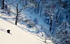 Skidåkaren/skribenten DanMarcus Pethrus i Japan. Här är balansen avgörande för att skapa en intressant bild. I detta fall balanseras åkaren av en stor mörk yta till höger. Bilden delas upp i två halvor med en diagonal som avgränsare, vilket tydligare spär på balansakten. Foto: Peder Sundström