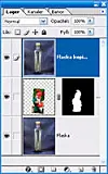 Tomten har frilagts, fått lite mer kontrast och placerats på eget lager ovanför flaskan. Flasklagret har sedan duplicerats och placerats längst upp.