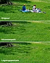 Lagningspenseln fungerar som en smart klonstämpel. Genom att ta hänsyn till målområdets färg och intensitet smälter korrigeringarna bättre in i omgivningen. Lagningspenseln ger därför i allmänhet ett bättre resultat.