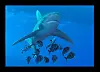 Om du vill ha en ram kring hajen i vårt andra exempel behöver du en tredje metod. De tekniker vi har tittat på hittills skapar ju fasta ramar i bakgrunden. För att en ram ska följa med bilden när du flyttar den, kan du använda ramlinjer.