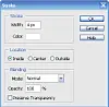 Längst upp i dialogrutan ställer du in ramens tjocklek och färg. Välj sedan om du vill ha ramen på insidan, på utsidan eller mitt på bildkanten. Blandningsalternativen längst ner behöver du inte bry dig om när du bara ska skapa enkla ramar.