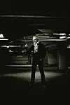 Parkeringsgarage är en cool miljö. Blixt-en sitter i paraplyet som Hans Jonsson håller i. Stativ användes för kameran då exponeringstiden var 1/20 sek.