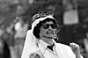 Förstår ingenting. Är det en man, en kvinna? Sur/glad? Dansar/pekar? Taliban-outfitten med solglasögon? Känns som en urspårad medelålders möhippa. Gillar skarpt.