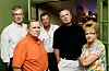 Genomärlig, det känns som att den är fotad mellan tagningarna. Människorna på bilden är oförställda och ser lite sura ut. Ljuset gör den bisarr och komisk och bilden har lite Tunbjörkkänsla – är det så här vi människor ser ut och är? Jag fastnade för den redan från början.