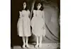 Den här bilden är väldigt vacker, som självlysande i sin kopiering, men också i hur flickorna står. En står självsäkert med ena benet framför det andra och tittar rättframt in i kameran. Den andra flickan ser lite osäker ut. De tycker nog att de är väldigt fina i sina klänningar, men de bär upp dem olika. Jag tycker om olikheten i likheten.