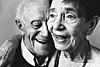 Äkta värme och närhet som fångats tack vare fotografens kontakt med paret och deras relation sinsemellan. Vackert hur kvinnans kind täcker och skuggar mannens ansiktshalva. Oskärpan förstärker ögonblickskänslan.