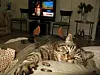 Haha, extremt rolig bild! En slutkörd men nöjd katt med människofötter. Vardagligheten i att ligga i en vanlig säng i ett vanligt hem och titta på Västnytt kan uppenbarligen sätta igång kreativiteten.