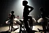Underbar bakom scenen-bild på unga ballerinor. Snyggt komponerat med vackert ljus och öppen för många tankar. För mig känns det som efter genrepet, läraren ska precis gå igenom föreställningen och alla är spända på den riktiga föreställningen.