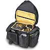 För att komma åt utrustningen behöver man inte öppna hela väskan. Från toppen av väskan kan man plocka ut sin kamera. På framsidan finns ett mindre fack och två lite större fack. På ena sidan av väskan finns en vadderad ficka med plats för ett extra kamerahus. På andra sidan en extra ficka.