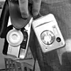 Skolavslutning. Är så pass yrkesskadad att jag räknar kameror. Det går en kamera på fyra föräldrar ungefär. Nittio procent digitalt. Men en medpappa skiljer ut sig från mängden. Han har två kameror - en analog och en digital.