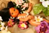 Bästa stillebenbilden en vår(av)klädd docka med pärlor och blommor