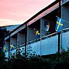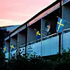 Men poängen med bilden är ju budskapet. Fyra svenska flaggor i rad, till synes demonstrativt uthängda.