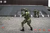 – Har motståndaren på sig samma skyddsutrustning som vi, måste man skjuta ett skott i huvudet för att vara säker, säger Alexander Karlsson som leder övningen.
