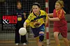 Efter en del trist fasad-fotografering med stativ är det skönt att gå över till ett skarpare läge i testfotograferingen. Nu är det riktigt vidriga omständigheter som gäller, miljöer där ingen kameratillverkare någonsin skulle låta ta sina exempelbilder för reklambroschyrerna. Det är flickhandboll i Farstahallen söder om Stockholm. Ni som plåtar sport vet hur det är - hälften av lysrören är släckta av besparingsskäl. För att nå den eftertraktade slutartiden 1/500-dels sekund, ett minimum för att frysa handboll med någorlunda säkerhet, får jag bländare 2,8 och ISO 2500. Eller Hi 0,7 på D200-språk.