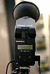 Jag brukar inte hänga på D70forum, men många av de aktiva på sajten hänger i Nikons monter redan när mässan öppnar. Jag ser en av nikonkillarna med två kamerahus med blixtar och en stor fotorygga med både enbensstativ och trebensstativ hängande. Han rör sig i nikonmontern som en elefant i en glasbutik.