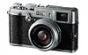 Fujifilm Finepix X100 har en APS-C CMOS-sensor med 12 megapixel, ett Fujinon-objektiv med fast brännvidd på 23 millimeter, ljusstyrka 2,0 och en hybridsökare som kombinerar en ljusstark optisk sökare med en 1,4 megapixel elektronisk sökare.