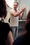 Nu ska fotograferna själva få öva på att bygga upp olika gruppbilder. Thomas ger varje person en åldersgrupp att utgå ifrån.