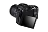 Den tre tum stora amoled-skärmen är vikbar och har 614 ooo bildpunkter. Som komplement till skärmen har man en elektronisk sökare med svga-upplösning och en sensor som känner av när man sätter ögat mot den och då slår av skärmen. TIll skillnad från de två enklare kamerorna har hastigheten i serietagningen, i rawformat kan man fota i 8 bilder per sekund. Man har även ökat slutartiden till 1/8000 dels sekund.