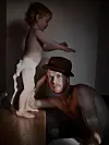 Johan låter även det reflekterande få ta plats. »Det är bilder som oftast visas med en kvinna om man tittar tillbaka i konsthistorien«, säger Johan. Här syns Göran Sevelin med dottern Liv.