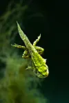 Vid ett tillfälle när systrarna var ute och fotograferade under en regnig dag, såg de längs en å hur en lövgrodda hoppade iväg och i någon sekund kom att hänga i ett par vasstrån. Det såg nästan ut som att grodan hade skaffat sig två styltor.