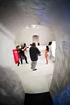 Deltagarna förflyttar sig in i studion där det längs med ena väggen just nu hänger en vit fond, och på motsatta sidan av rummet en svart. Aje har ställt upp blixtutrustningen mot den vita.