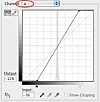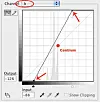 4. Dra in bägge ändpunkterna ett antal rutor. Ju mer du drar in, desto starkare blir färgerna. (Håll ner "Alt" och klicka i kurvfönstret för att göra rutmönstret finmaskigare).