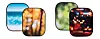 Out of focus background kommer i två olika varianter med två olika motiv på varje bakgrund. Den ena har kombiantionen hav/höstlöv medan den andra är prydd med sommargrönska/kvällsvy i staden.