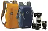 Väskorna har en hållare för kompakstativ på sidan, fästen för isyxor eller vandringsstavar finns också. De har båda ett inbyggt regnsskydd som kan tas fram om vädret blir sämre. kamerainsatsen i väskan går att snöra ihop och lyfta ur, på så sätt kan väskan användas till annat än kamerautrustning om man vill.