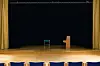 Vi har kommit ner i det som är hjärtat i alla Folkets hus; stora salen. Det finns något tråkigt men hemtamt med byggnader av det här slaget: furupanel som gulnat, plastmattor, stolar vars stålben vänts upp och ner över långbord, skevande persienner och storköksporslin. Här finns också den obligatoriska scenen med den likaledes obligatoriska ridån i någon sorts lyxig plysch.