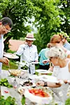 Men det är inte bara mat som hamnar framför kameran, vissa jobb är mer reportageliknande i sitt upplägg. Det kan vara att illustrera en sommarmiddag i skärgården, en kräftskiva eller något annat. Då brukar Christina mest gå runt och fotografera medan modellerna som får äta maten gör just det, äter.