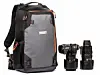 Ryggsäcken rymmer en professionell DSLR-kamera tillsammans med ett monterat 70-200mm f/2,8, två andra standardobjektiv samt blixt. Resestativ kan fästas på båda sidor av ryggsäcken.