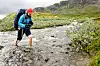 Unna Allakas, 2012-07-25 . Ett vad över en fjällbäck mellan Unna Allakas och Abiskojaure. Även om det är kallt är det skönt att komma ur kängorna en stund.