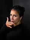 Sanna letar fram en portfoliomapp, där hon har porträtten utskrivna i stora format. Mellanformatets styrka när det handlar om skärpa och djup syns tydligt i bilderna, även om de är ganska rena.