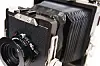 – Den är som ett konstverk tycker jag, säger hon medan hon försiktigt fäller upp den och visar hur man sätter dit objektivet. Själva kameran var inte så farligt dyr, runt 17 000 kronor, men filmen är väldigt dyr nuförtiden. Storformat är mycket vackrare än andra sätt att fotografera, jag vill gärna fota på ett trevligt behagligt ställe med den här, inte djungeln eller nåt annat jobbigt ställe, säger hon och skrattar.