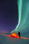 – När det är mellan -25 och -30 grader så tar batterierna slut snabbt. Med de nya större kamerorna fungerar det ganska bra, men jag har fortfarande med mig reservbatterier, berättar han. En gång hade han en gammal Canon 5D med sig ut, de batterierna räckte för två bilder. Nu klarar han oftast en hel kväll på ett batteri.