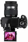 Okey, de är inte helt först. Till exempel kan man på Fujifilm S3 se sökarbilden på skärmen, om än i mycket begränsad form. Men Olympus är den första kameratillverkaren som förädlar en bra idé till en användbar finess.