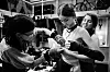 Sara testfotar och de tittar på skärmen.