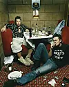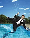 – Då är det skönare att göra så här, säger Pär och bläddrar fram till bilden på Rickard där han kastar sig ner i en pool i kostym och ett martiniglas i handen.