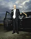 Henrik Dorsin har Pär fotograferat flera gånger. I en bild kombinerar han flera av sina signum. I grunden är porträttet ganska enkelt där komikern står framför en bil rätt upp och ner. Twisten är slipsen och kaffet som far åt motsatt håll från varandra. Dramatiken den rejält oroväckande himmeln.