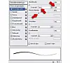 Klicka sedan på "formdynamik". Börja med att sätta kontrollen för storleksdarr till "tona". På så sätt får du linjens tjocklek att gradvis avta. Vilket pixelvärde du ska ange till höger beror på bildens upplösning. Enklast är att du provar dig fram så att tjockleken avtar lagom fort. Använd förhandsgranskningen som vägledning. Öka också värdet för minsta diameter något för att inte linjen ska försvinna helt och hållet när toningen är färdig.