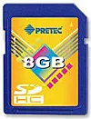 Vanliga SD-kort har en begränsning på maximalt 2GB. Därför har en ny standard kallad SDHC utvecklats. Hittills har 4GB varit den största storleken på SDHC-korten. Pretec är först med 8GB.