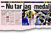 Redigeraren jobbade sin sista natt och ville skojja till det. Emma Johansson hade tagit silvermedalj i OS och tidningen gjorde fem sidor om framgången. På det sista uppslaget visas en bild från spurten tagen av en fotograf från Bildbyrån/AFP/AP.