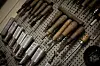 Väggarna i verkstaden täcks av verktyg och noggrant märkta lådor i plast och trä, som rymmer reservdelar. Svarvar och maskiner för test och kalibrering av hus och objektiv trängs på bänkarna.
