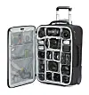 Om det skulle råka börja regna finns det ett regnöverdrag i väskan som går att dra fram. Andra funktioner är att innerväskan går att lyfta ur med utrustningen på plats och gör då väskan till en något större resväska som går att använda till annat. Inredningen med kamerautrustningen går då att bära på ryggen som en ryggsäck.