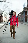 Filmar gör han med sin DSLR-kamera, och han använder alltid samma objektiv som när han tar stillbilderna.