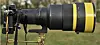 Det bastanta objektivet väger hela 7,5 kilo. Alltså mer än ett 600/4. Med objektivet levererades en specialtillverkas 1,4x telekonverter kallad TC-14C.