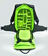 Väskan är försedd med en avtagbar stativhållare och regnskydd. Ett brett höftbälta finns liksom breda axelremmar. Reflexer gör fotografen synlig om natten.