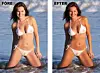 Den mer extrema varianten av skönhetsretuscheringen involverar ofta en förändring av modellens kropp. Särskilt inom glamourfoto är det mer regel än undantag. Att avlägsna kroppsveck och asymmetrier helt och hållet ger av uppenbara skäl ett resultat som inte är särskilt realistiskt. Ska du bara fräscha upp ett foto bör du förstås undvika eller åtminstone vara väldigt försiktig med den typen av åtgärder.