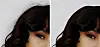 Eftersom du satte efterbelysverktygets område till "mellantoner" påverkas inte de vitaste delarna av hårstråna så det finns ingen anledning att vara överdrivet noggrann. Du får dock räkna med att lite detaljer försvinner när du mörkar ner områden närmast de minsta hårstråna. Var därför lite extra försiktig i de partierna.